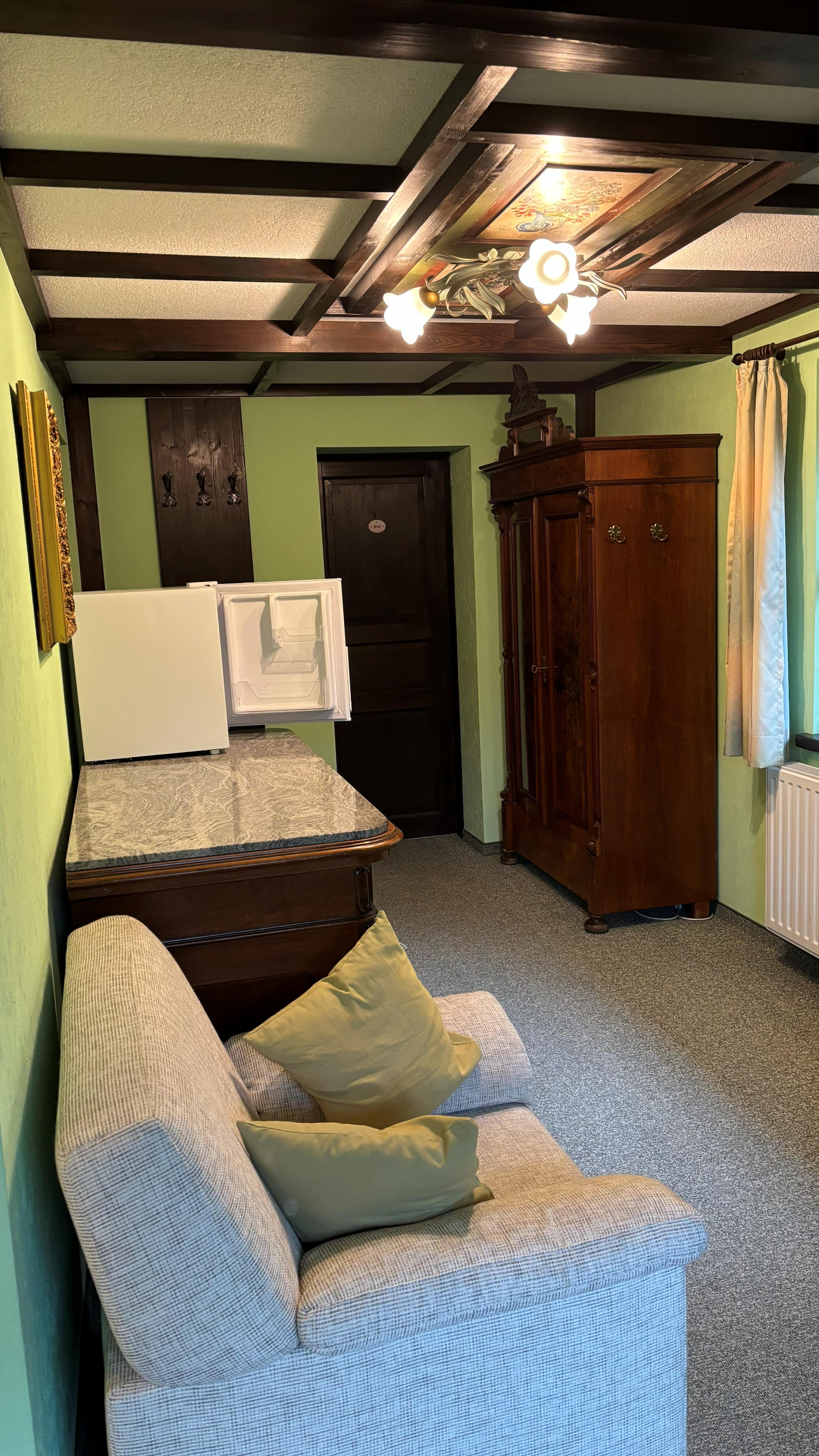 Charmante Juniorsuite mit Doppelbett und Sitzbereich.